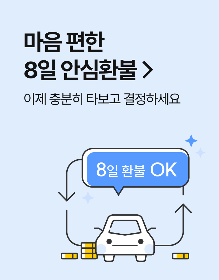 ① 구매자가 차량을 인수한 날로부터 8일 내 “회사” 고객센터나 구매한 지점의 영업사원을 통해 환불 접수 및 차량 반환 신청을 하고, 반환 신청일 익일(단, 해당일이 영업일이 아닌 경우 그 다음 영업일)까지 차량 또는 옵션을 차량 인수 장소에 반환한 경우에 한하여 전부 또는 부분 환불이 가능합니다.